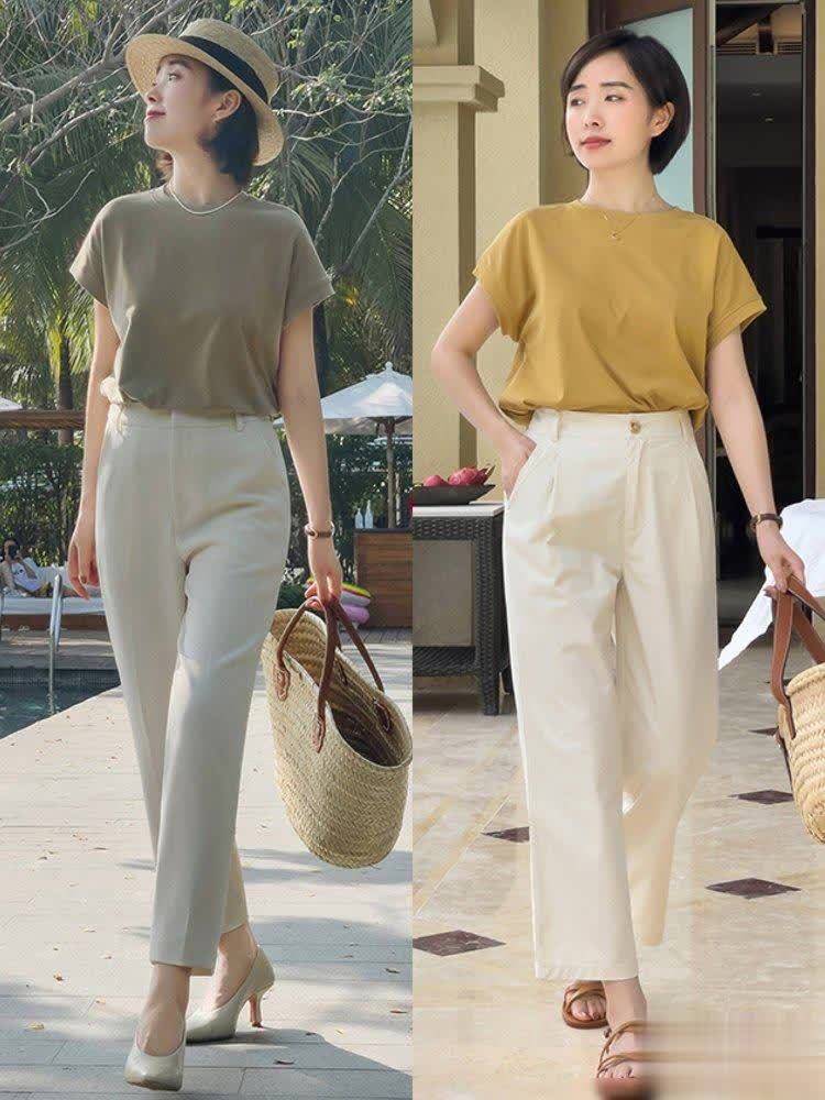 比如白T恤搭配卡其色直筒裤,清爽之感如同咬了一口冰镇西瓜;淡粉色连衣裙配上米色小开衫,温柔得仿佛能掐出水来。